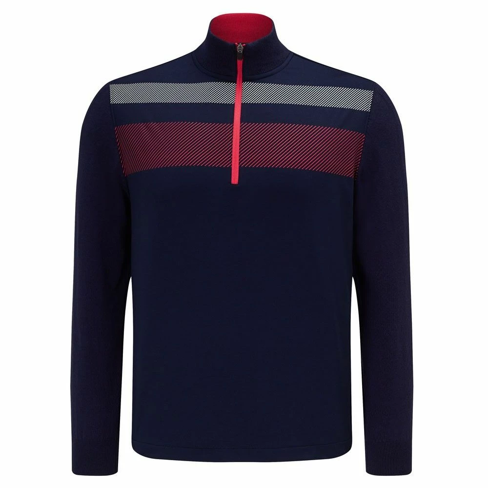 This 1/4 zip mock neck pullover with chest print has a contrast colour inner neck and zipper and features the Callaway logo on the right sleeve and at the back of the neck to give you assurance you are buying a quality product. Callaway garments are designed to combine the latest technologies and materials, allowing you to perform well, feel unrestricted and protected from the elements out on the course.
