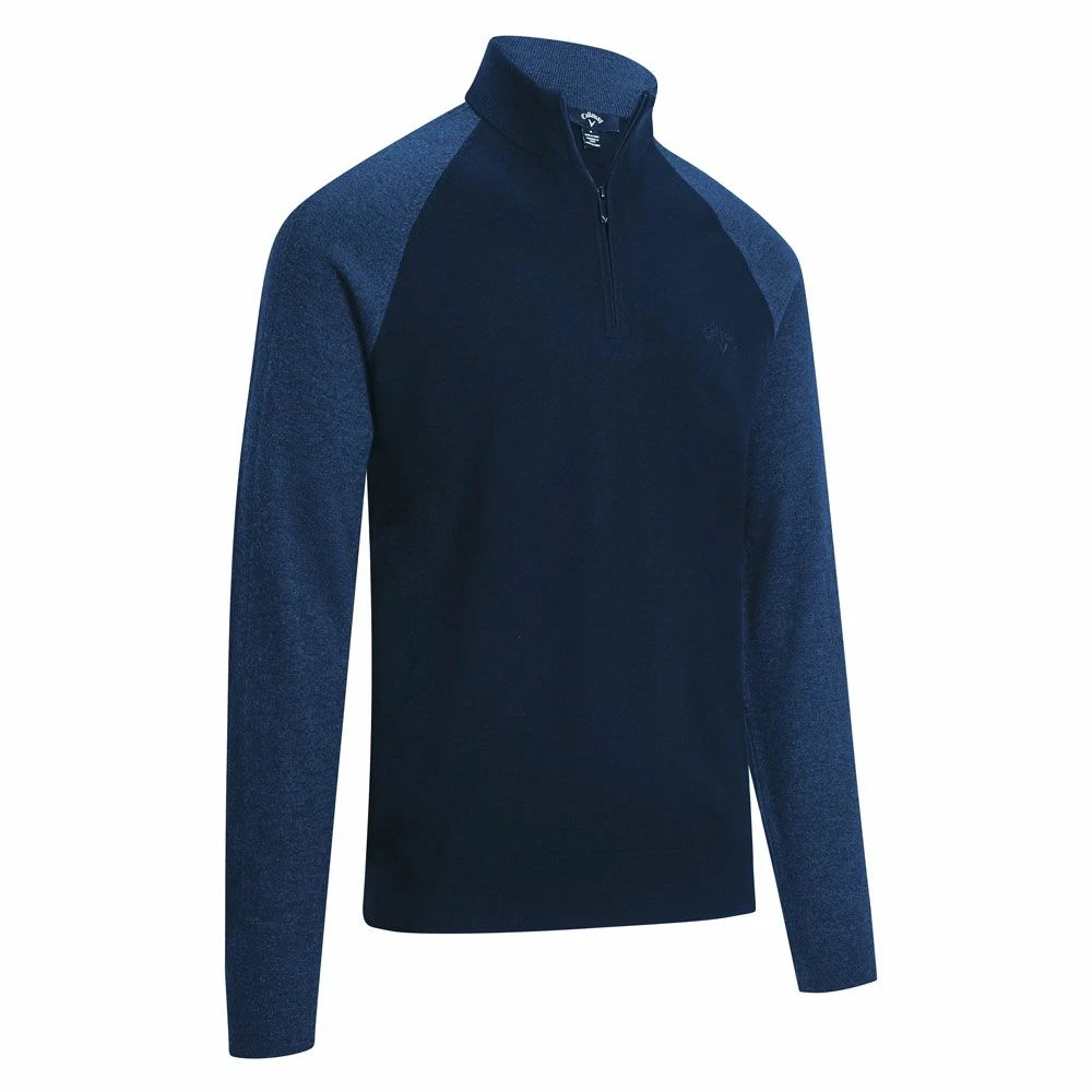 The Callaway Golf Raglan Sweater is made from a stretch nylon and merino wool blend for the luxury, soft feel of wool that is easy to care for. This sweater has thermal properties to keep you warm when the temperature drops and is perfect for both on and off the golf course. A 1/4 zip allows for easy on/off and Callaway branding on the left chest finishes off the look nicely.