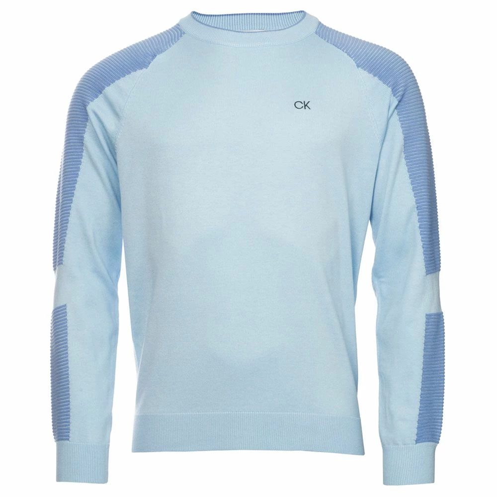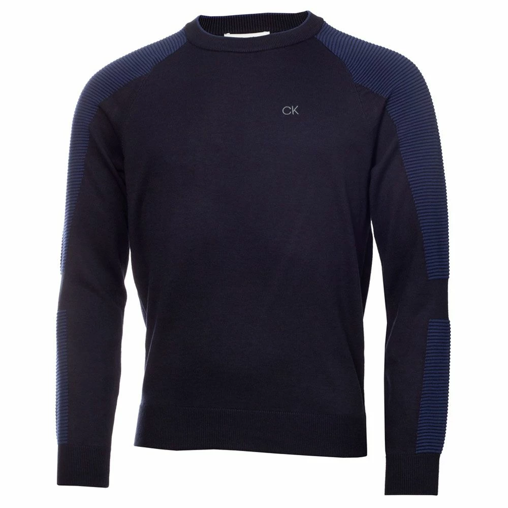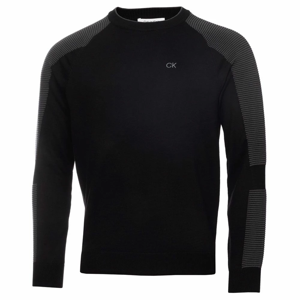 Update your knitwear for the season ahead with the Calvin Klein Veleto Crew Golf Sweater. Exceptionally warm and soft thanks to the merino wool blend this sweater has a refined air that will work in any setting. Ottoman striped lines on the sleeves add an interesting change of texture.
