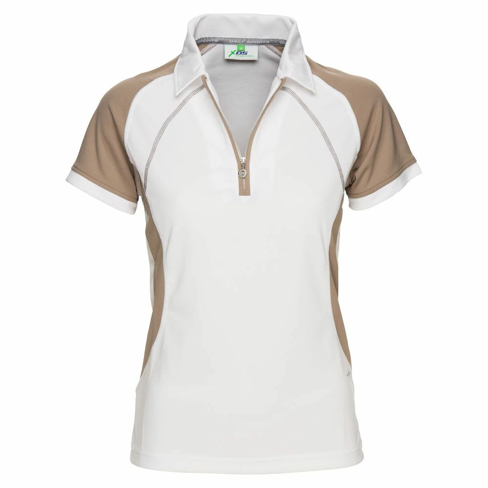 The Ladies Amanda Golf Polo Shirt by Daily Sports has everything you look for in a golf shirt – it is lightweight, breathable and quick drying so will keep you feeling cool and fresh throughout the day and with a trendy zip fastener replacing the more traditional button up collar and a fitted style it has a modern, sporty look. The material in this shirt provides natural built in UVA and UVB sun protection with a UPF of 40+ so it will keep you protected from the sun harmful rays on those hot summer days on the course.