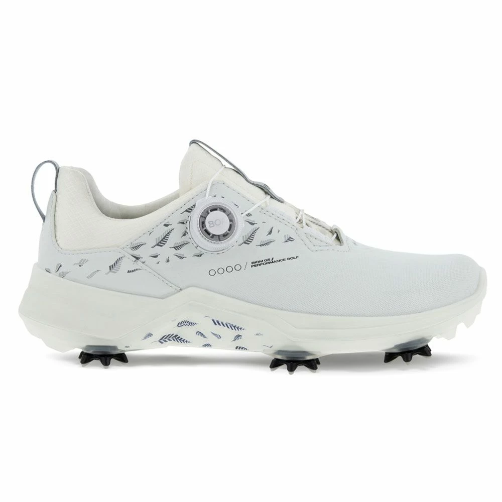 Bring some playful, feminine and athletic style to the course with this special edition of the new Ecco BIOM G5 Boa Ladies Golf Shoe that celebrates the heritage of ECCO ambassador Lydia Ko. The original design, which incorporates a South Korean hibiscus and New Zealand silver fern is blended with advanced, athletic performance. The next generation of the BIOM G3 is equipped with ZARMA-TOUR spikes and innovative hybrid outsole sections for outstanding traction and stability. Made with BIOM NATURAL MOTION technology and ECCO FLUIDFORM Direct Comfort Technology, the shoe features GORE-TEX waterproof technology and the precision fit BOA Lacing System.
