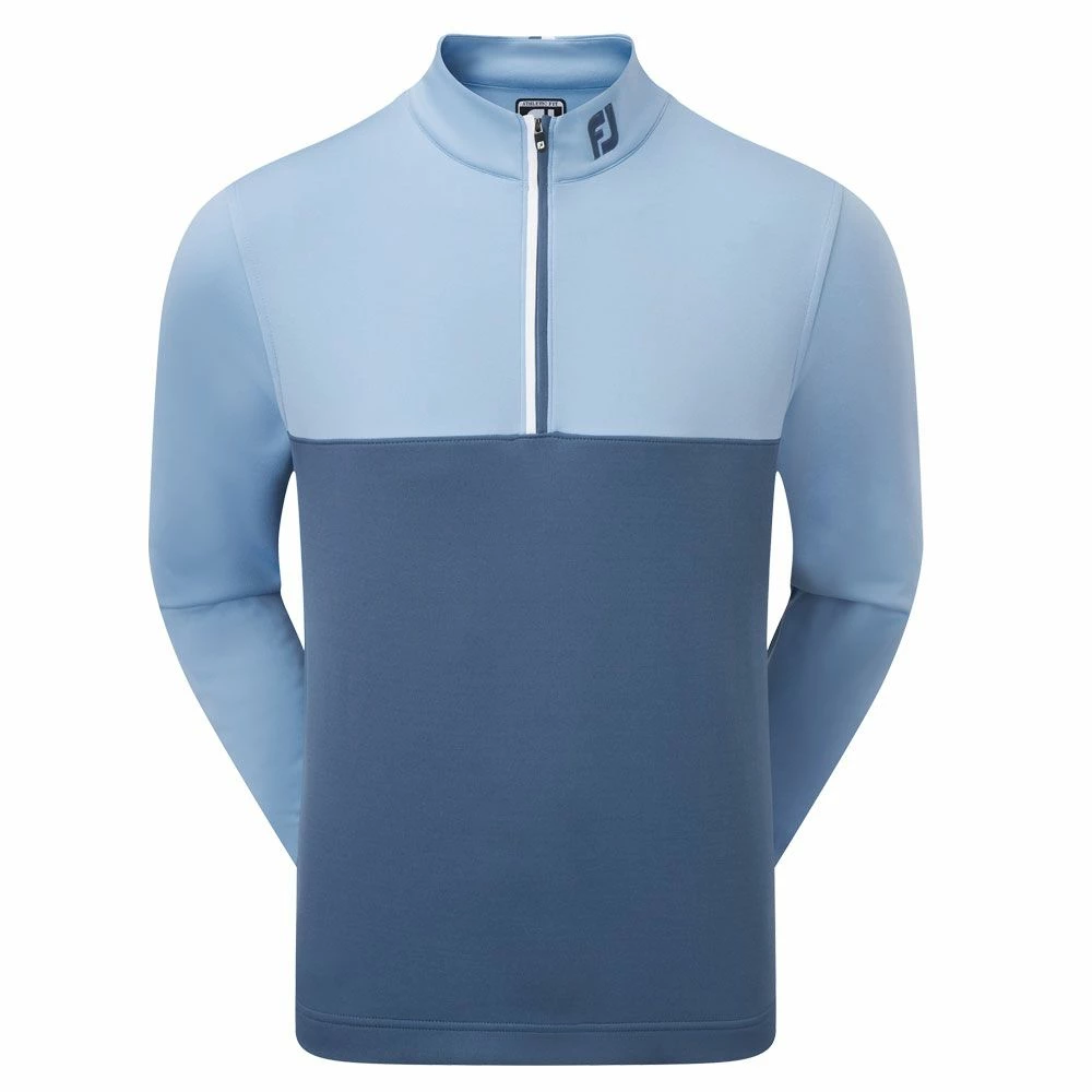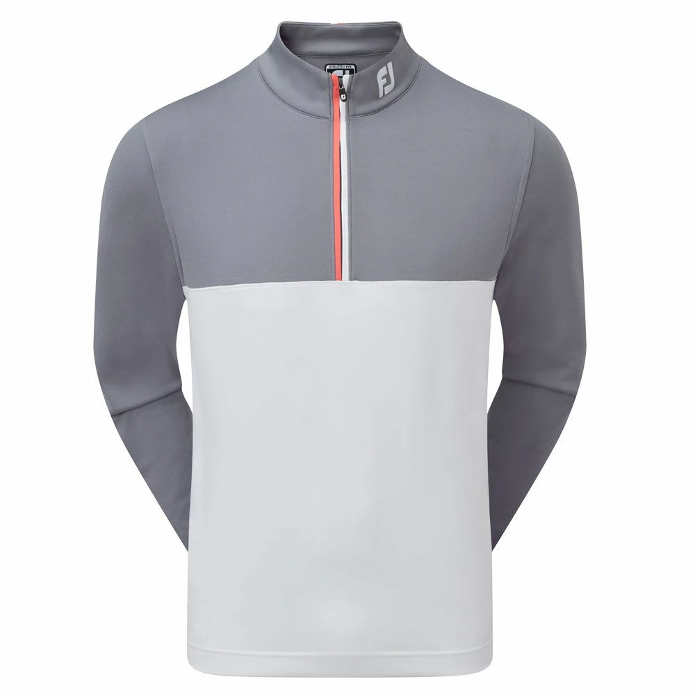 The FootJoy Colour Block Chill-Out Golf Pullover makes the ideal layering piece over a polo shirt in the warmer months or under a wind- or waterproof jacket in the colder months. It has an athletic fit with shorter sleeve lengths and a smaller chest measurement for a trim look and the fabric is easy to care for and will resist wrinkling. This type of fabric is also very efficient at moving moisture away from the body so you stay dry and comfortable throughout the day. Finished with a two-tone contrast zipper and detailing at the back collar the Colour Block Chill-Out Golf Pullover is an excellent year-round choice from FootJoy.