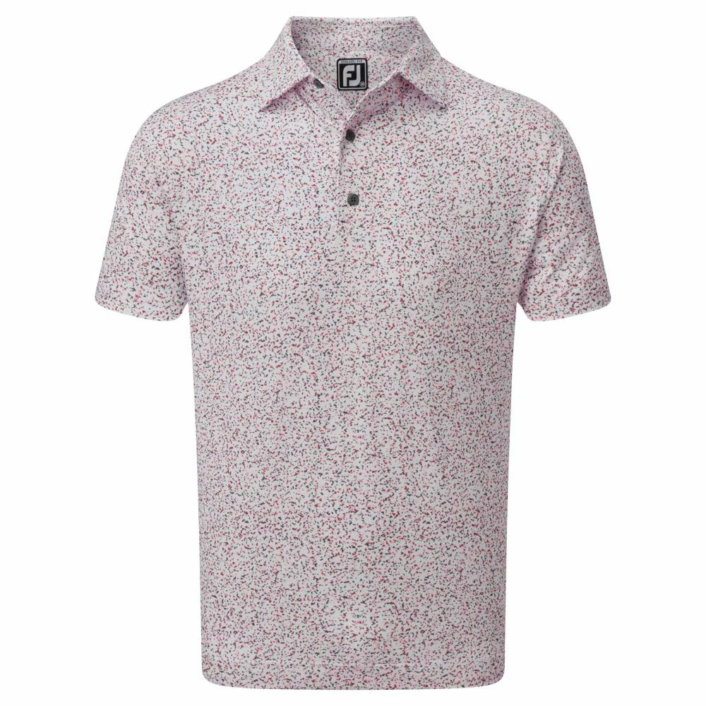 The FootJoy Granite Print Lisle Golf Polo Shirt has an eye-catching all-over granite print pattern perfect for the course or wherever you choose to wear it. Styled with an athletic fit, it has shorter sleeve lengths and a smaller chest measurement for a trim look. The fabric is easy to care for and will resist wrinkling and it features moisture-wicking properties to draw moisture away from your skin so you feel dry and comfortable. An SPF 30 layer of UV protection also keeps you shielded from the sun’s harmful rays where the fabric covers your skin, which is a real bonus when you’re out on the course on those long summer days. An embroidered ‘FJ’ logo at the back yoke completes the look.