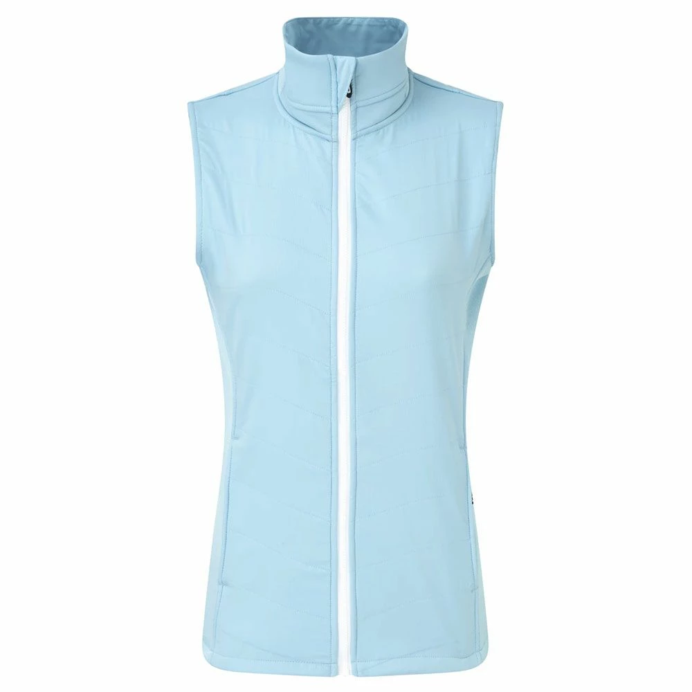 The FootJoy Ladies Thermal Quilted Golf Vest provides all over insulation for added warmth in cold conditions. The exterior woven panels act as a barrier to the elements and an extended high collar provides additional warmth and protection. The four-way stretch fabric combines to allow complete range of motion during the swing so even though you’ve added an extra layer you won’t feel restricted in any way. Styled with a full two-way zip for easy on/off and two front pockets for essential items, the FootJoy Ladies Thermal Quilted Golf Vest is perfect when you need an extra layer of warmth.