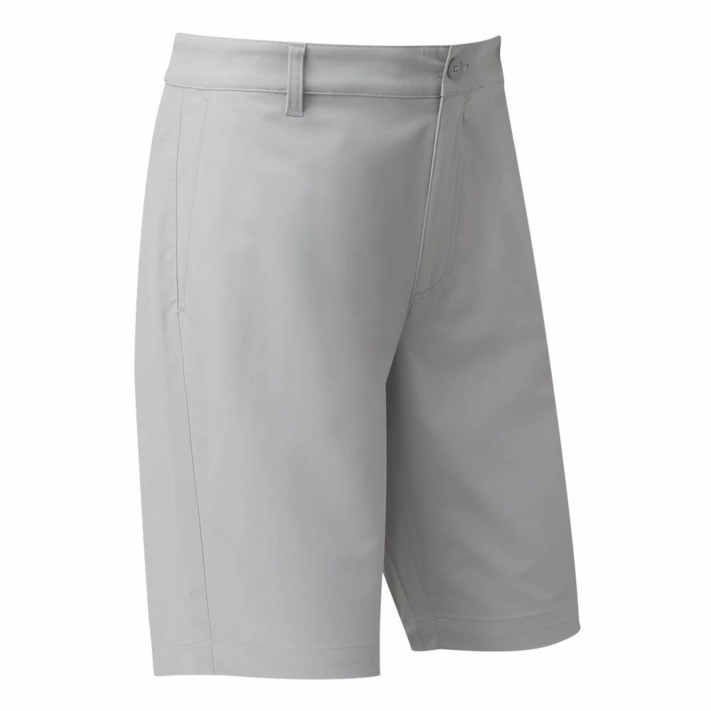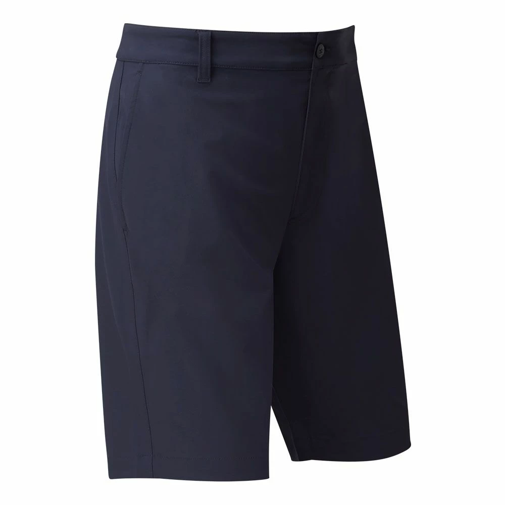 The FootJoy Par Golf Shorts are made from a woven stretch twill polyester fabric with a modern, tapered fit cut. The lightweight fabric is highly breathable and a rubber FJ gripper inside the waistband prevents shirts from riding up during play. There are two side entry pockets and two single welted rear pockets and the fabric is easy to care for and maintain.