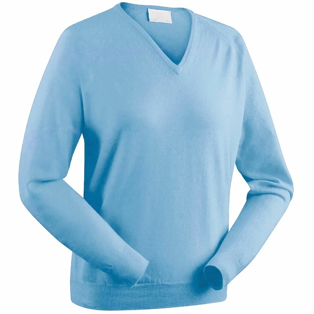 Both classic and contemporary, the Glenbrae Ladies Merino V-Neck Sweater is extremely soft, tailored to fit and equally at home on the course, out to lunch or around the office. Designed to move with you, every Glenbrae knitwear garment is engineered with SPIROL ® , a strong, fine technical yarn that provides the perfect fusion of elasticity and sports performance. SPIROL ® yarn also helps the garment maintain shape and the controlled formation of air pockets in the engineering of the yarn ensures temperature control, retaining or releasing heat to help you stay at optimum temperature. SPIROL ® also helps the garment retain softness, resists creasing, has minimal pilling and is machine washable so it’s easy to maintain and will always look great.