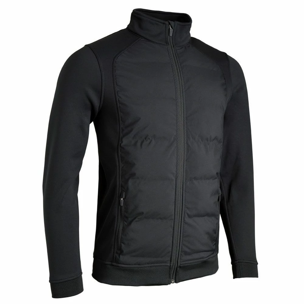 The Glenmuir Callander Golf Jacket is a padded Storm Bloc.® performance piece with bonded padded zones on the front and back. It has stretch fleece sleeves and side panels with a ribbed cuff and hem for the perfect fit whilst providing warmth, blocking wind chill, and repelling showers. Finished with an embroidered Glenmuir 1891 logo at the hem and a Storm Bloc.® logo at the back of the neck, the Glenmuir Callander Golf Jacket is perfect for those chilly days when you need an extra layer.