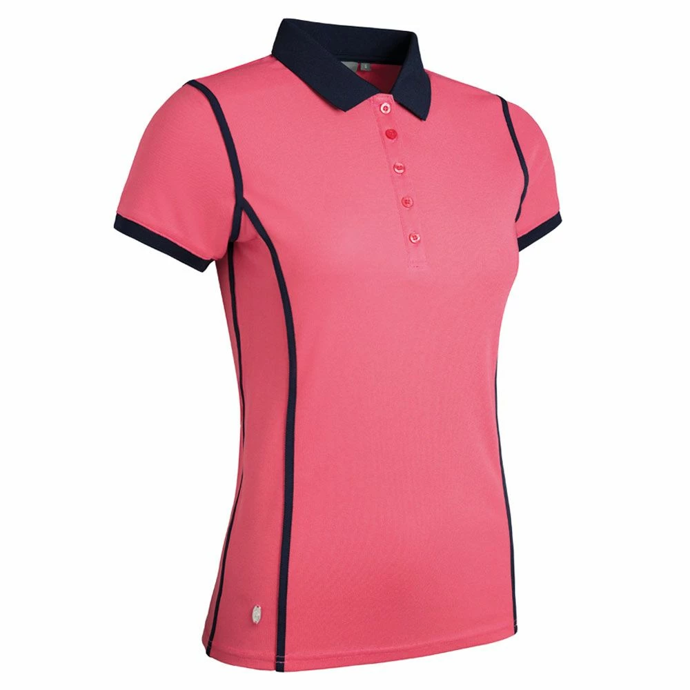 The Glenmuir Ladies Perrie Golf Polo Shirt features contrast piping and an anti-curl ribbed collar and ribbed cuffs provide a smart look for the course. Constructed from moisture-wicking, breathable Polyester pique fabric, with +40 UV protection against the sun this shirt will keep you feeling dry and comfortable on warm summer days. The pre-washed and pre-shrunk fabric makes it easy to care for with little or no ironing and a Glenmuir Lady engraved logo plate above the right hem finishes off the look nicely.
