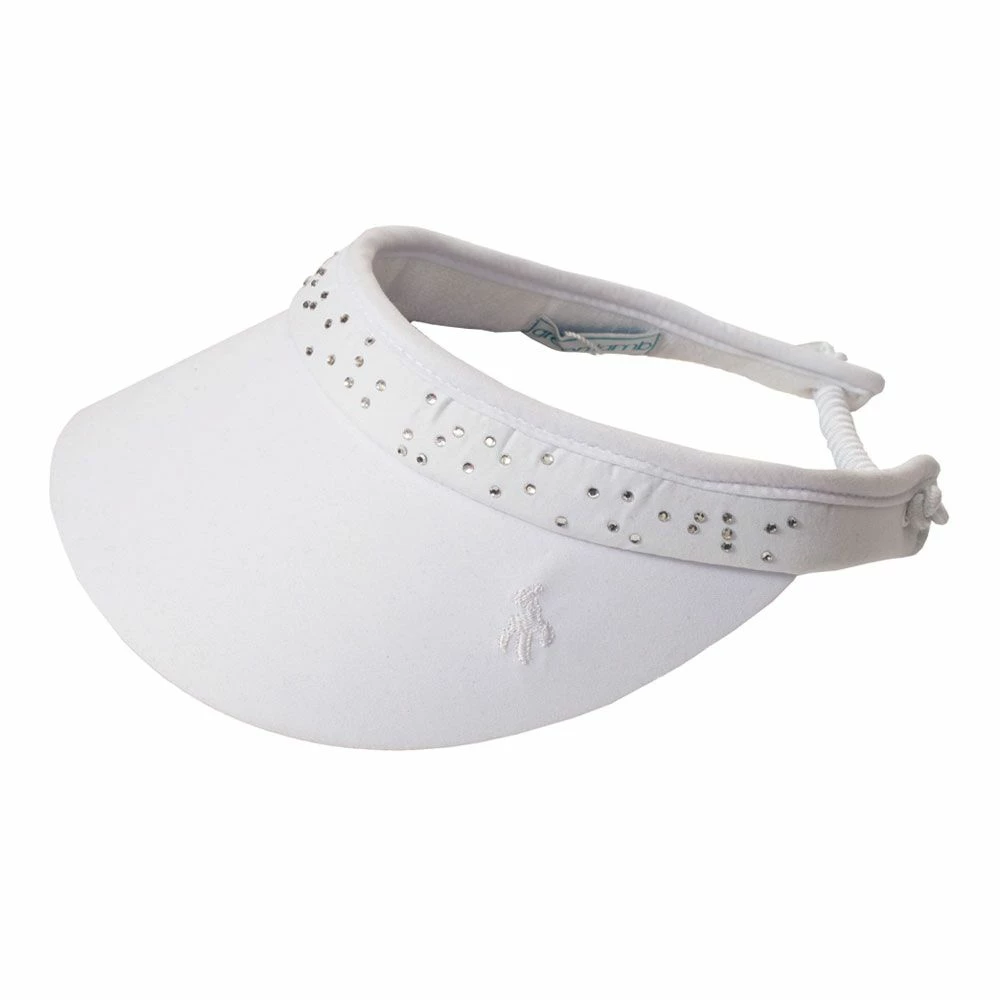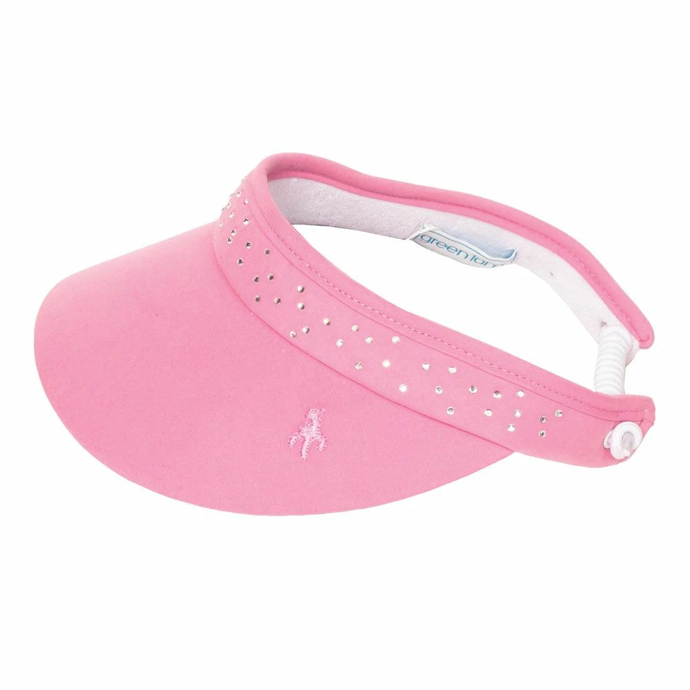 The Green Lamb Madeline Diamante Coil Ladies Golf Visor features a pretty diamante detail around the headband. A coiled cord at the back keeps the visor comfortably in place.