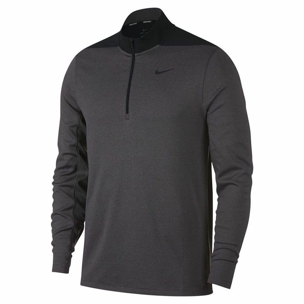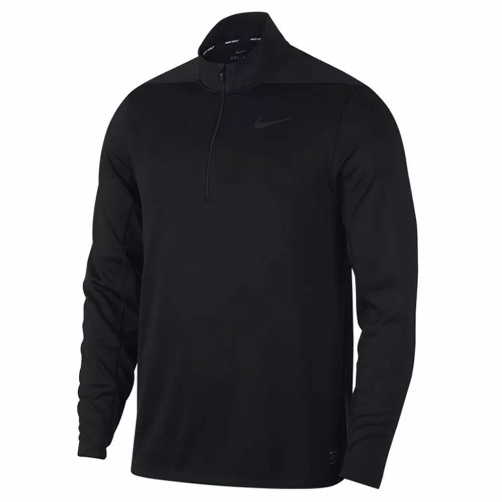 The Nike Dry 1/2 Zip Golf Pullover provides the customisable coverage of a 1/2 zip design and the sweat-wicking power of Nike Dry fabric so you can stay dry and comfortable. Nike Dri-FIT is a high-performance, microfibre, polyester fabric that moves sweat away from the body and to the fabric surface, where it evaporates so you stay dry and comfortable. Perfect as a layering garment over a polo shirt on those cooler summer days or under a waterproof or windproof during the winter months this pullover features a high collar for extra protection from the elements. The addition of elastane in the upper back panel allows great freedom of movement so you can play without feeling at all restricted.