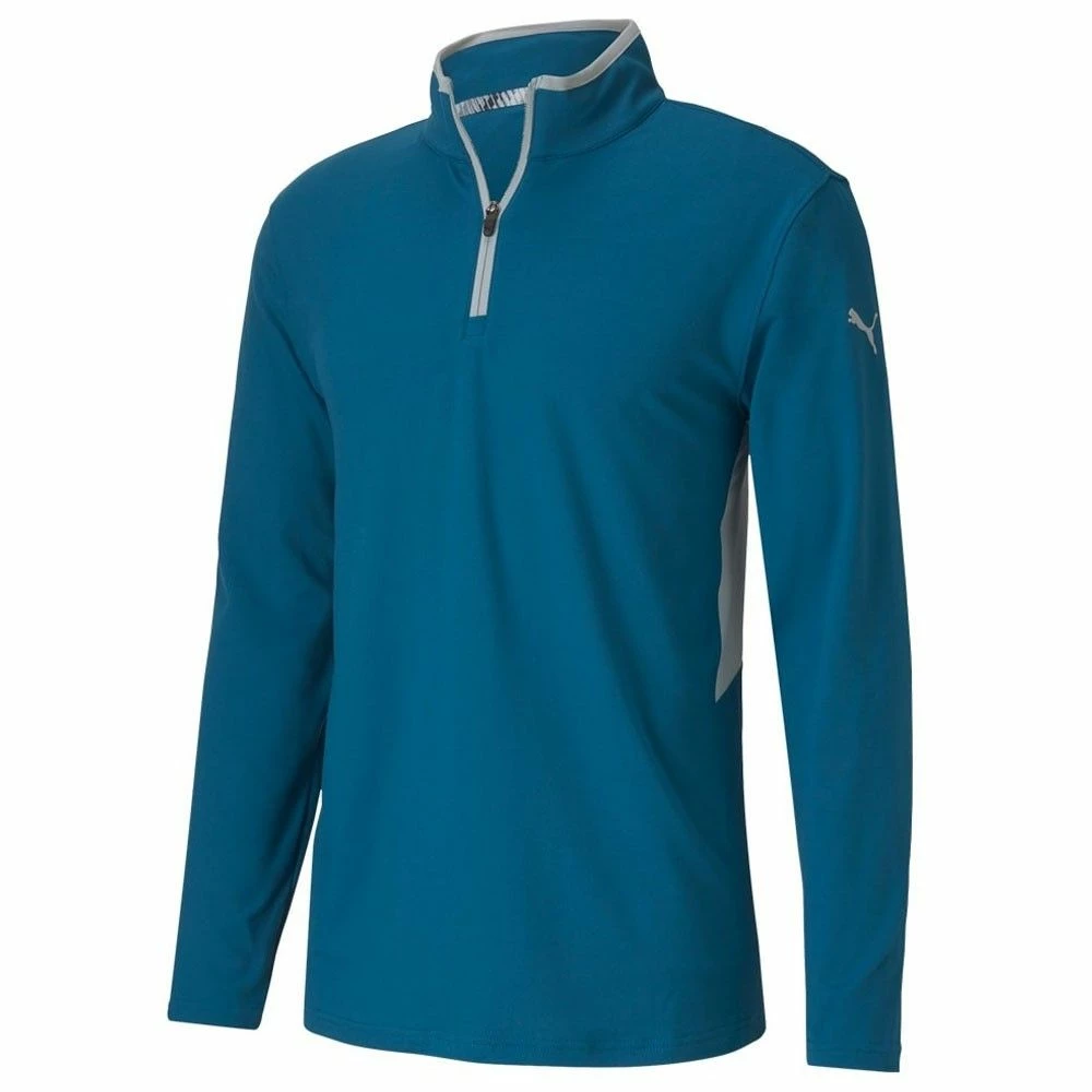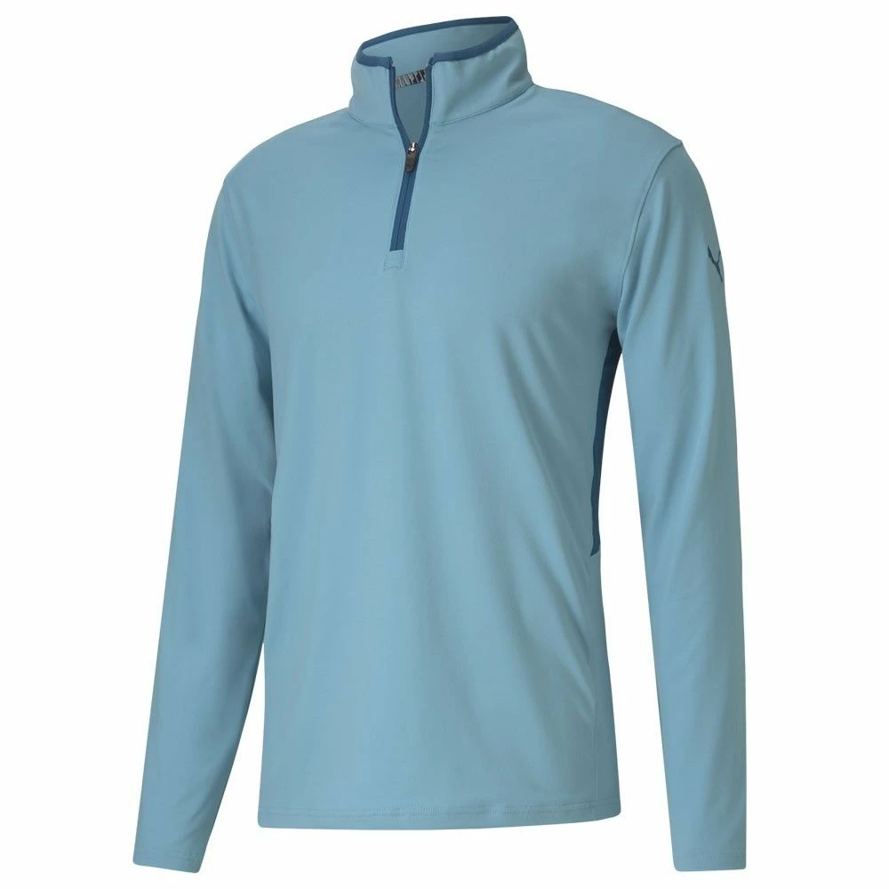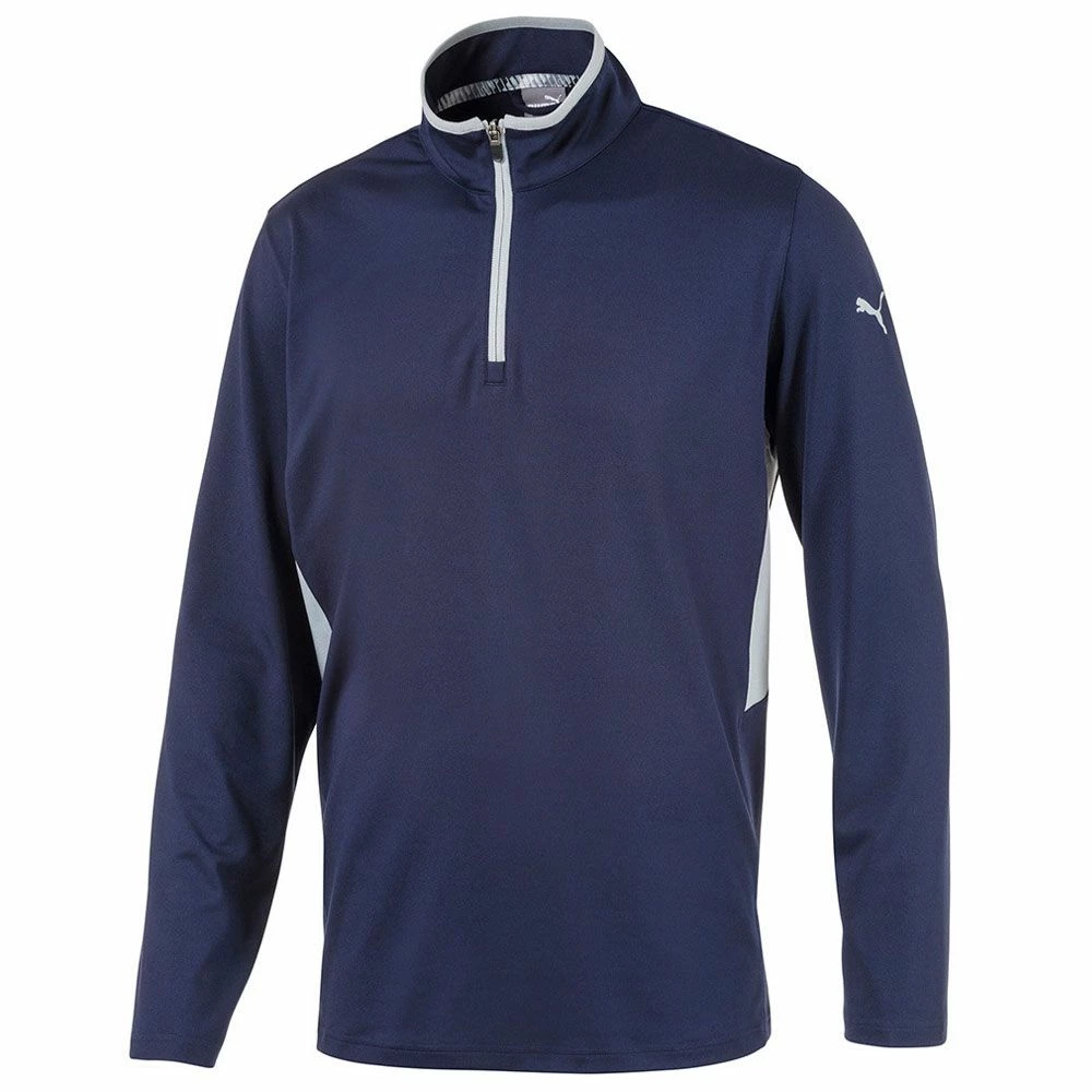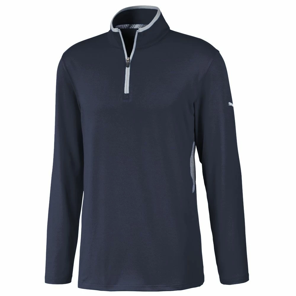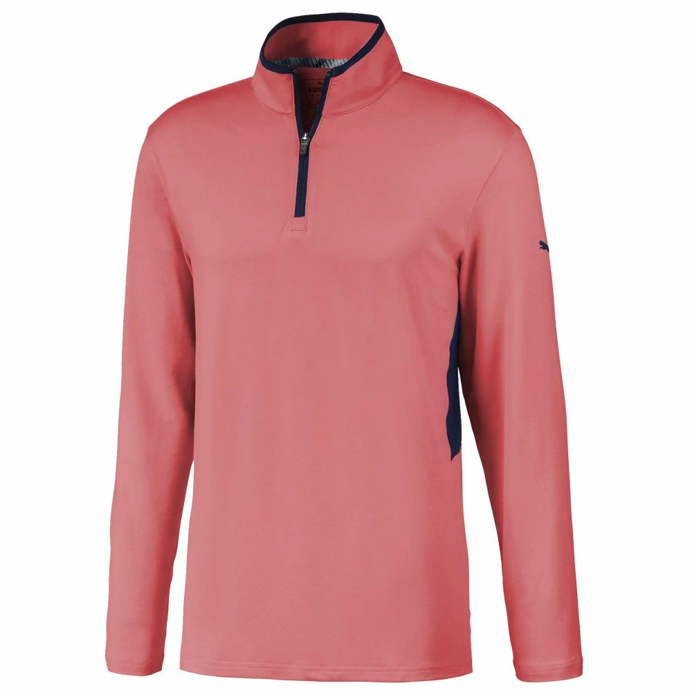 The Puma Rotation 1/4 Zip Golf Pullover features dryCELL moisture-wicking fabric to keep you dry, warm and comfortable. Puma’s dryCELL fabric is very efficient at moving moisture away from the body to the surface of the garment where it can disperse so you feel dry and not sweaty even though you’ve added an extra layer. The stretch polyester fabric is lightweight and extremely easy to care for so it will still look good after many washes.