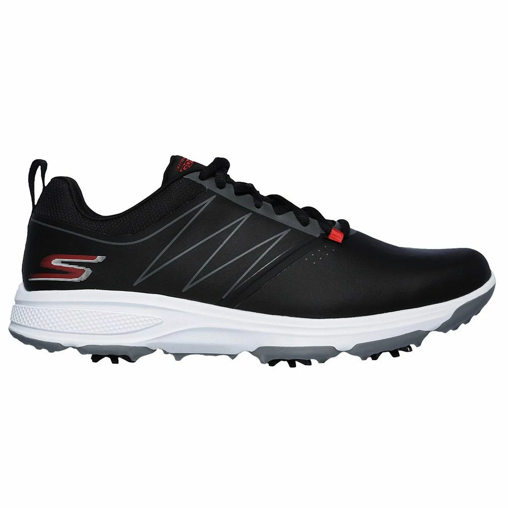 The Skechers Go Golf Torque Golf Shoes have a smooth, nearly seamless design combined with Skechers H2GO waterproof protection, responsive cushioning for ultimate comfort and replaceable Softspikes® for maximum grip. The sleek synthetic uppers have a leather-look finish and a contrast coloured side design with Skechers branding and HG2O waterproof protection making them completely waterproof, backed by a one-year waterproof warranty.