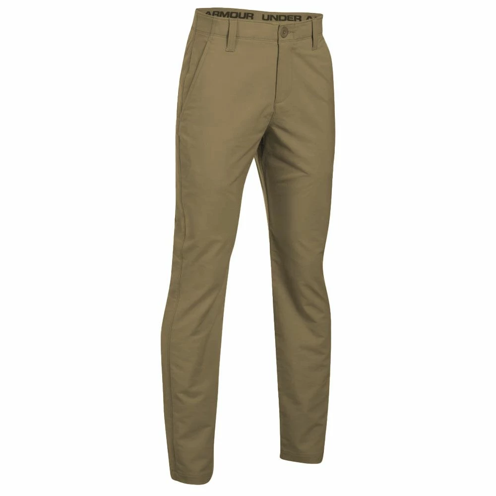 The Junior Matchplay Pants from Under Armour have many great features which the budding young golfer will love. These trousers have a flat front design and straight leg for a more modern look but are loose fitting and made with soft, stretchy woven fabric for complete comfort. The stretch waistband has adjustable elastic tabs for a better fit, ideal for the growing golfer. These trousers feature Under Armour’s Moisture Transport System which draws sweat away from the skin to the surface of the fabric where it can evaporate. Finally, a discrete Under Armour embroidered logo above the right back pocket gives you the assurance that this is a quality product you can rely on.
