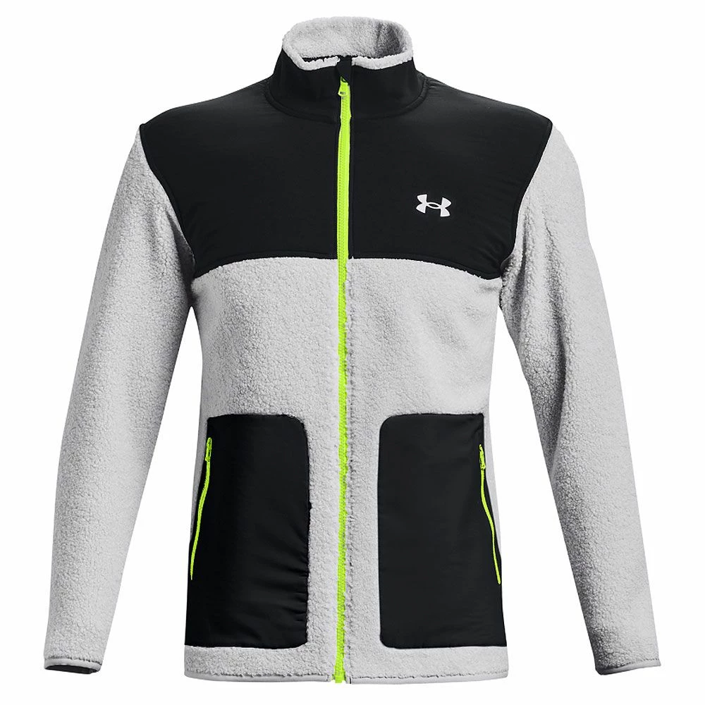 The Under Armour SweaterFleece Pile Full Zip Golf Jacket combines the comfort and warmth of a sweater with the performance and stretch of a lightweight fleece. The textured sherpa fabric is ultra-soft, and warm for ultimate comfort and woven overlays on the chest, collar and pockets provide added durability and structure. Finished with two hand pockets and Under Armour branding, this is the perfect all-season jacket.
